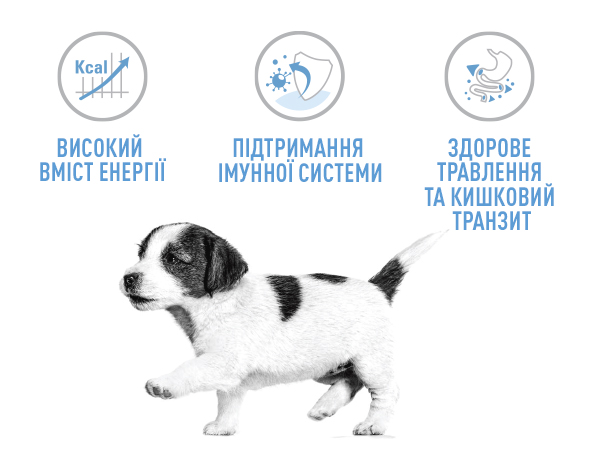 Збалансований вміст клітковини (в т.ч. подорожника) допомагає полегшити кишковий транзит та сприяє оптимальний консистенції фекалій. ВИСОКИЙ ВМІСТ ЕНЕРГІЇ Задовольняє енергетичні потреби цуценят собак мініатюрних розмірів в період росту та втамовує апетит цуценят, вибагливих до корму.