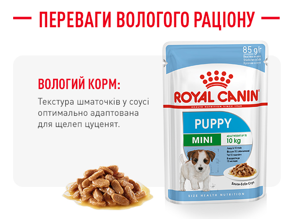 ПОВНОРАЦІОННИЙ ЗБАЛАНСОВАНИЙ СУХИЙ КОРМ ДЛЯ ЦУЦЕНЯТ МІНІАТЮРНИХ (ВАГА ДОРОСЛОГО СОБАКИ ДО 4 КГ), ВІКОМ ВІД 2 ДО 10 МІСЯЦІВ